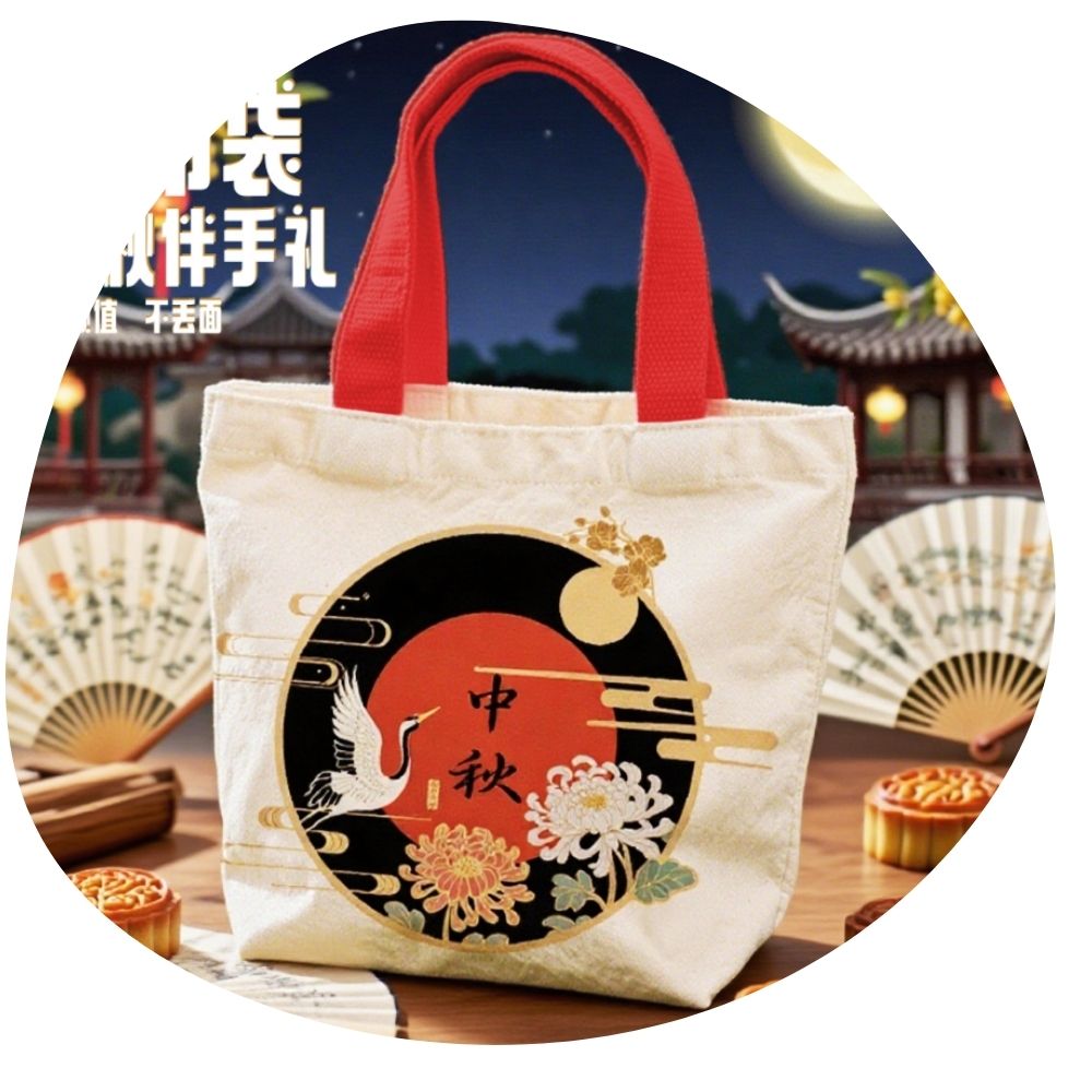 Mid Autumn Canvas Gift Bag with Red Bean & Lotus Single Yolk Mooncake