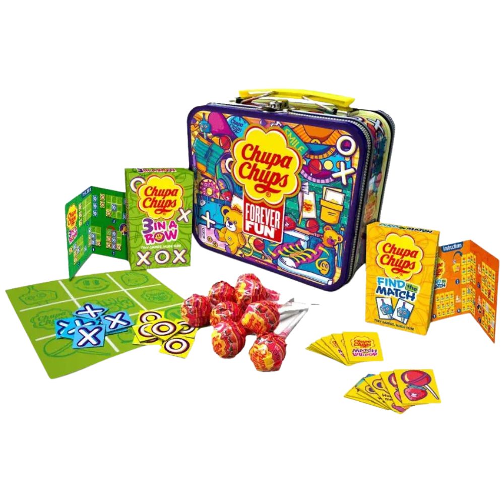 Chupa Chups Hard Candy Lollipop with Pocket Games Suitcase Forever Run Children Set 96g