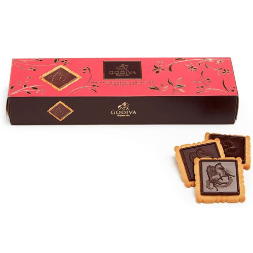 Iconic biscuit topped with smooth dark chocolate & embossed with legendary Lady Godiva.