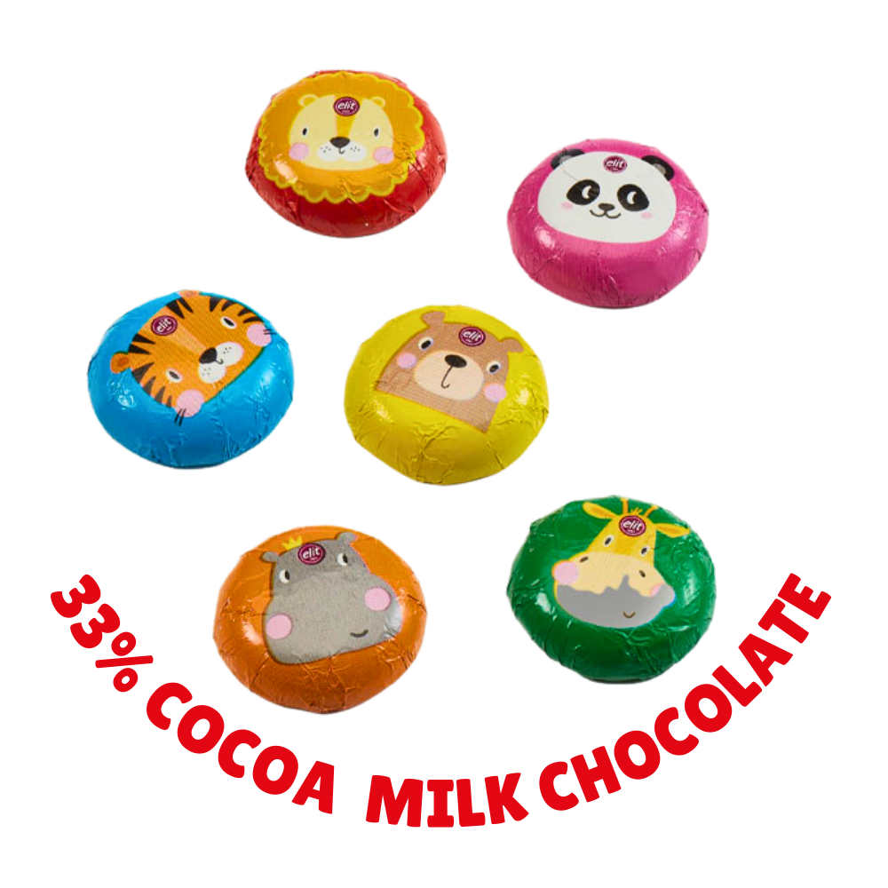 A fun treat for kids and the young at heart! With every piece of smooth and creamy milk chocolate wrapped in adorable animal designs, ready to charm kids, or even adults too!