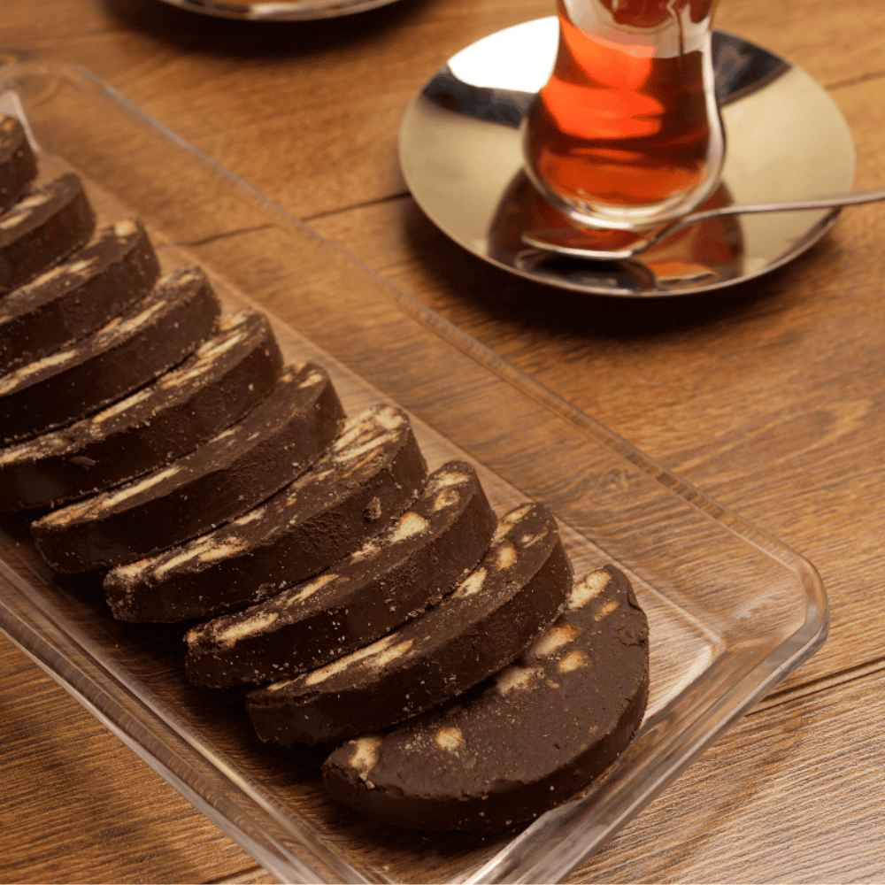 The Turkish version of our Malaysian favourite Kek Batik, featuring rich cocoa + luxurious hazelnut cream with a delightful crunch of biscuits in every bite!