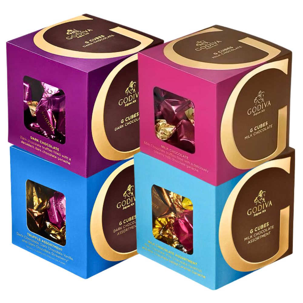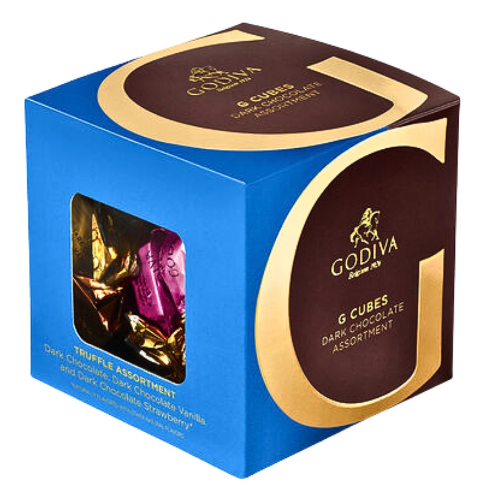 Featuring a modern 'G' embossed on top and individually wrapped truffles of Godiva G Cube 175g.