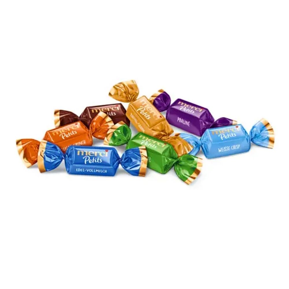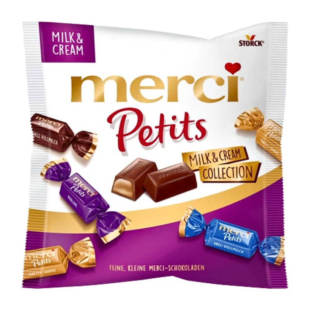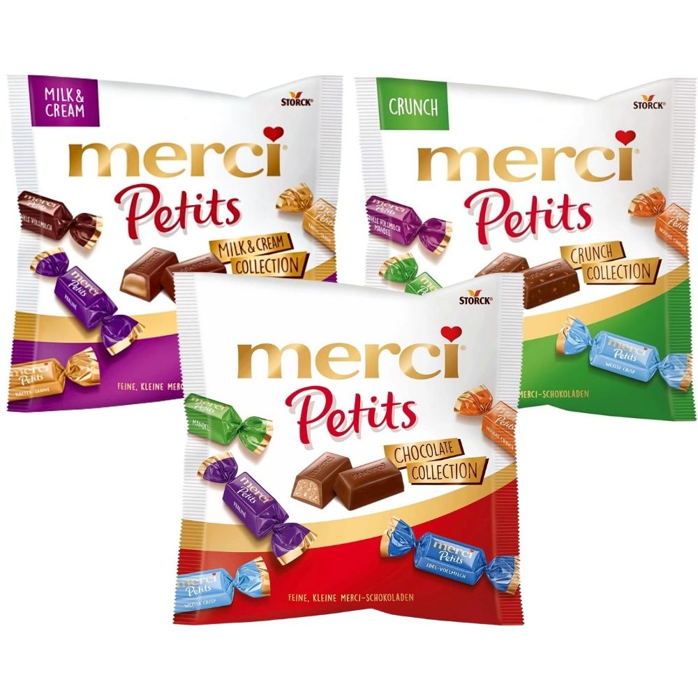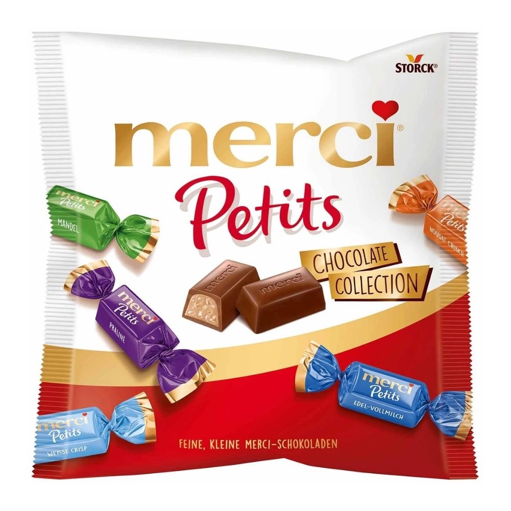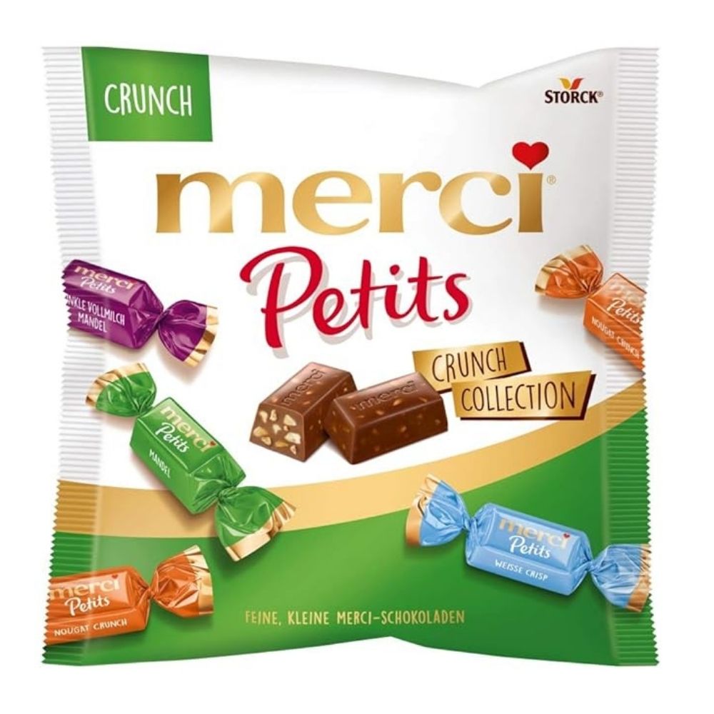 Savour the premium flavour of Storck Merci Petits Assorted Chocolate Milk Sharebag 125g – A delicious mix of creamy crunchy mini milk chocolates.
