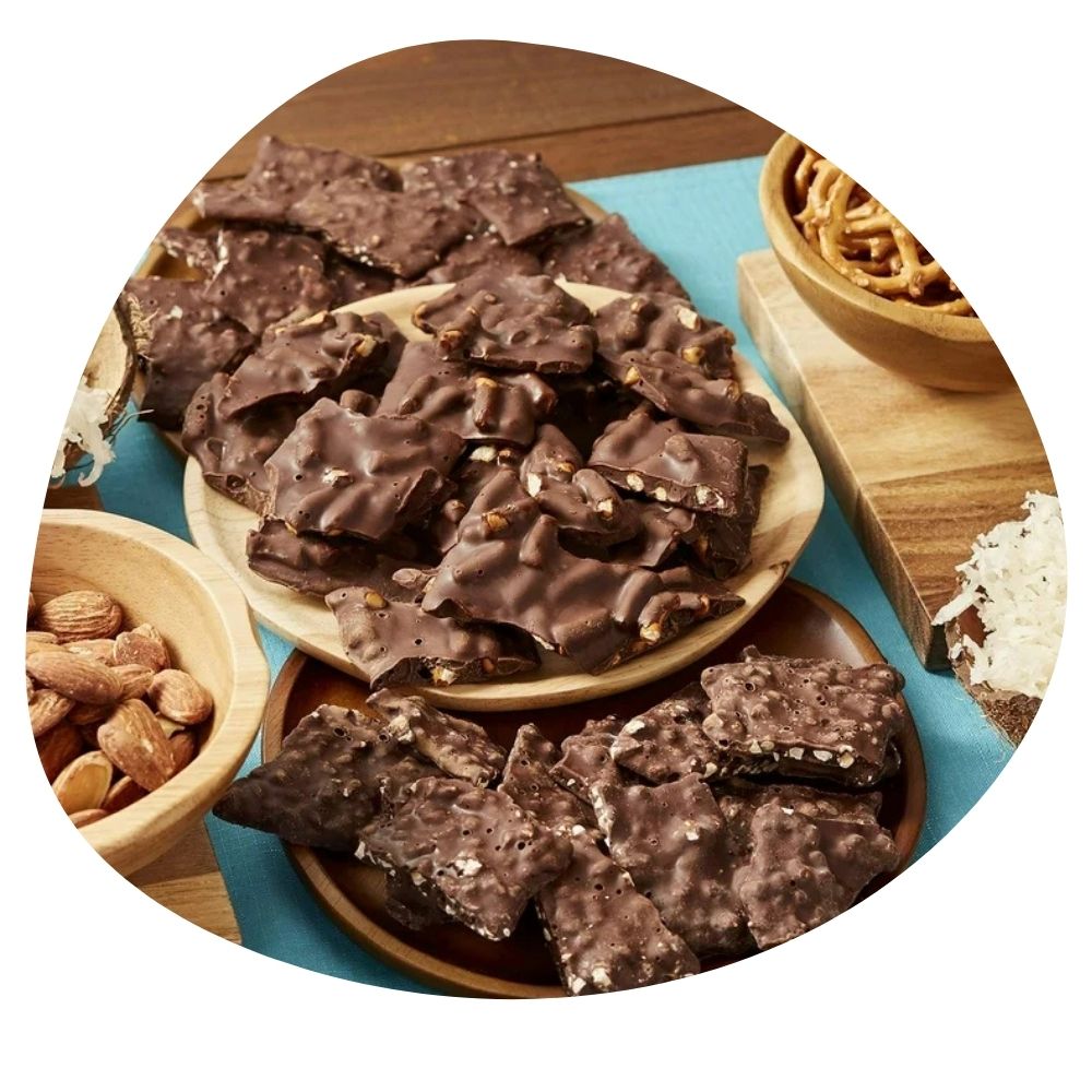 Manjakan diri dengan coklat gelap licin yang kaya dan potongan rangup, berperisa seperti pretzel, badam, kelapa dan banyak lagi — mewujudkan keseimbangan ideal antara manis dan masam