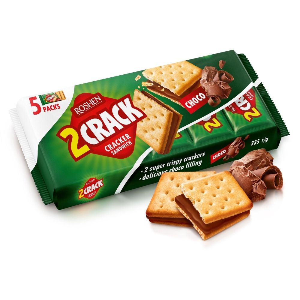 Roshen 2 Crack Chocolate Cracker Biscuit Sandwich with Chocolate Hazelnut Filling 235g